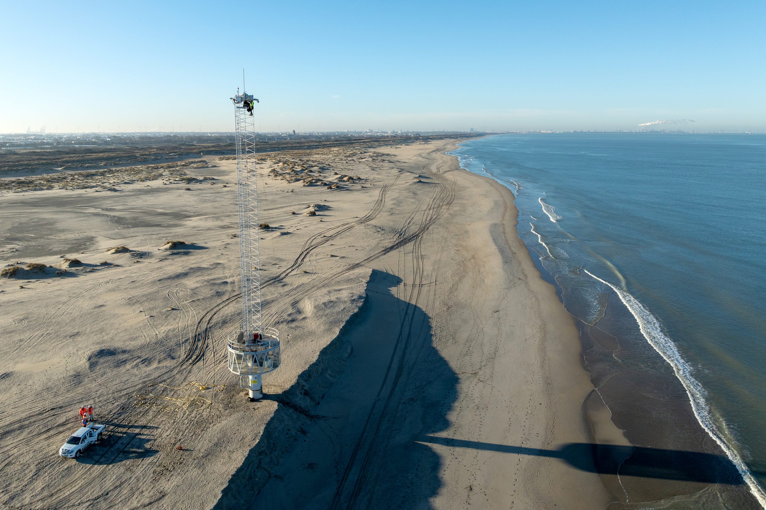 Rijkswaterstaat verwijdert de Argusmast op de Zandmotor